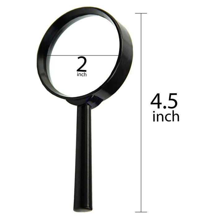 magnifying glass features a durable plastic frame with a stable handle, protecting the real glass lens from damage. Offering clear magnification with minimal distortion, it is an ideal tool for those with poor eyesight, helping improve the reading experience of newspapers, books, and small print. The lens is designed to be used on both sides, providing extended usability and enhanced clarity. Safe for children with low magnification to prevent strain on their eyes, this portable, lightweight magnifier is for all ages and a variety of tasks.